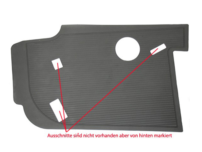 Our rubber mat only has the large round hole for the spare wheel attachment. All other cutouts for the jack/wheel wrench shown are simply marked from the back and can be removed if necessary. can easily be cut into it yourself.